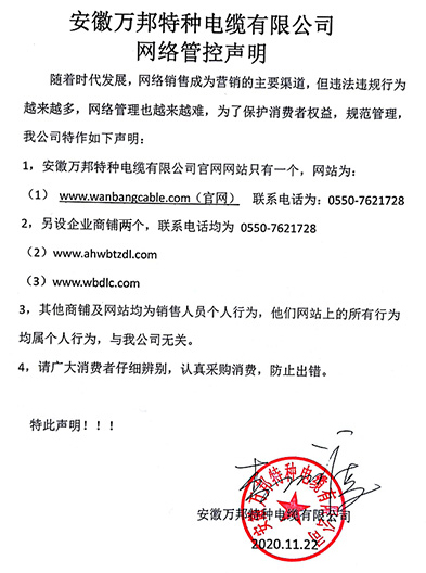 鄭重聲明:安徽萬邦特種電纜有限公司官方網站為:www_wanbangcable_com.vhgynt.cn,除此之外無任何子網站或合作網站,其余均為假冒偽劣。電話:0550-7621728 13485756353 地 址:安徽省天長市滁州高新技術產業開發區經四路29號